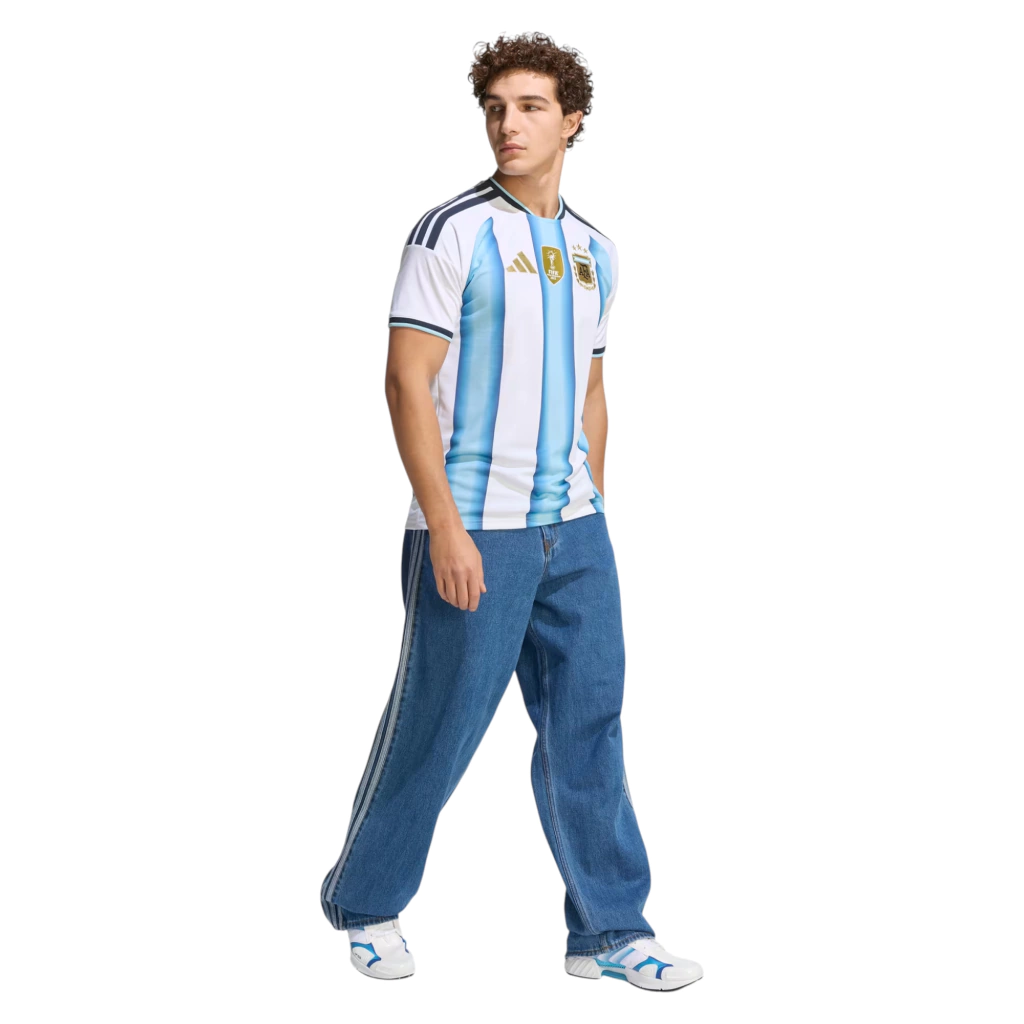 Celebrá el legado futbolístico de la Albiceleste con la camiseta titular de la Selección Argentina 26. La camiseta rinde homenaje a los Campeones del Mundo, mostrando un efecto degradado inspirado en las camisetas usadas durante las tres victorias de Argentina en la Copa del Mundo. Los ribetes, shorts y medias a juego complementan el diseño, mientras que el año de fundación de la Federación añade un toque de historia. Las audaces 3 Tiras y el cuello de temporada añaden un toque de estilo, para una atractiva mezcla de herencia e innovación. La camiseta es funcional además de estilizada, y la tecnología Climacool integrada evacua y dispersa el sudor para un rendimiento fresco, seco y sin distracciones. El material de secado rápido trabaja duro para que te sientas cómodo, incluso durante partidos intensos. Tanto para alentar desde la tribuna como para jugar en la cancha, esta camiseta encarna el espíritu de la excelencia futbolística. Unite a la celebración y llevala con orgullo, ya que Argentina entra en la escena mundial con la emblemática tercera estrella.