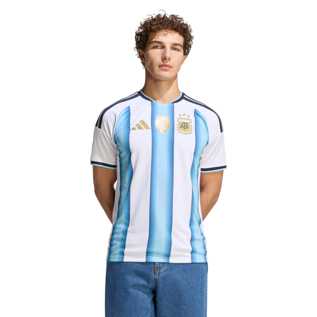 Celebrá el legado futbolístico de la Albiceleste con la camiseta titular de la Selección Argentina 26. La camiseta rinde homenaje a los Campeones del Mundo, mostrando un efecto degradado inspirado en las camisetas usadas durante las tres victorias de Argentina en la Copa del Mundo. Los ribetes, shorts y medias a juego complementan el diseño, mientras que el año de fundación de la Federación añade un toque de historia. Las audaces 3 Tiras y el cuello de temporada añaden un toque de estilo, para una atractiva mezcla de herencia e innovación. La camiseta es funcional además de estilizada, y la tecnología Climacool integrada evacua y dispersa el sudor para un rendimiento fresco, seco y sin distracciones. El material de secado rápido trabaja duro para que te sientas cómodo, incluso durante partidos intensos. Tanto para alentar desde la tribuna como para jugar en la cancha, esta camiseta encarna el espíritu de la excelencia futbolística. Unite a la celebración y llevala con orgullo, ya que Argentina entra en la escena mundial con la emblemática tercera estrella.