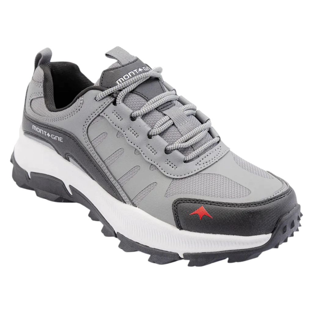 Material exterior: malla transpirable de alta frecuencia y refuerzos de poliuretano en talón y puntera. Material de la suela: EVA inyectada con un diseño de tacos multidireccionales con tecnología CINETIC FIT que garantiza gran tracción y agarre en superficies tanto secas como mojadas. Tecnología HALFLOAT, compuesta por materiales de alta densidad que le brindan al pie una pisada súper confortable con gran amortiguación. Tecnología ULTRA TRACK, diseñada con agarres multidireccionales que impiden el deslizamiento del pie en planos inclinados, y terrenos inestables. Tipo de ajuste: cordones.